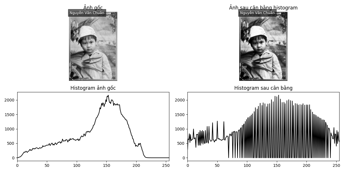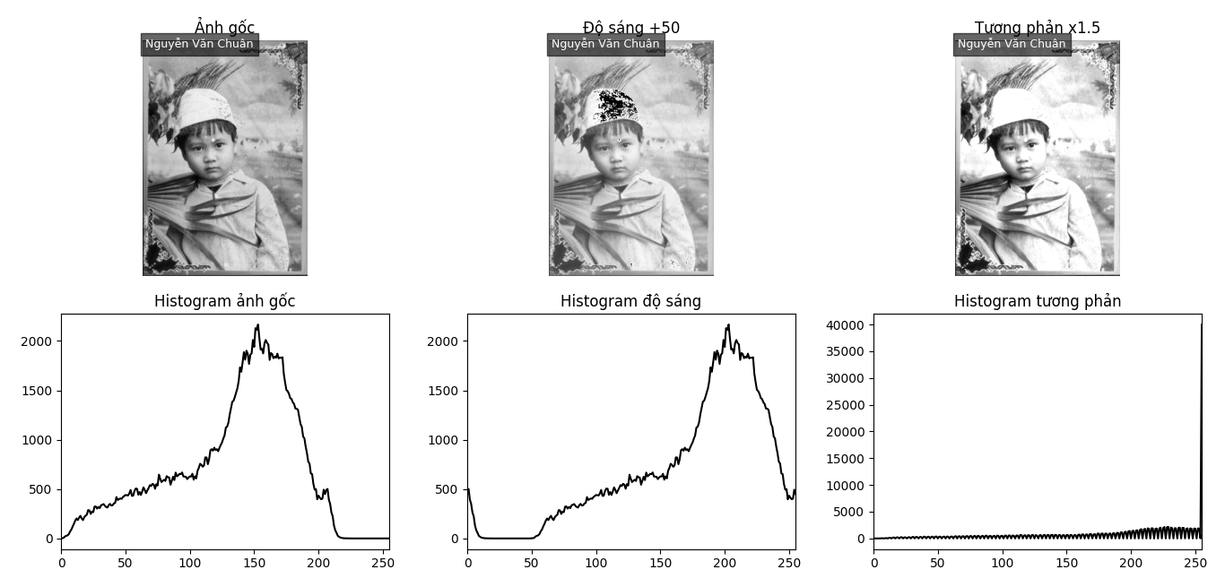 Kết quả thay đổi độ sáng, histogram, độ tương phản